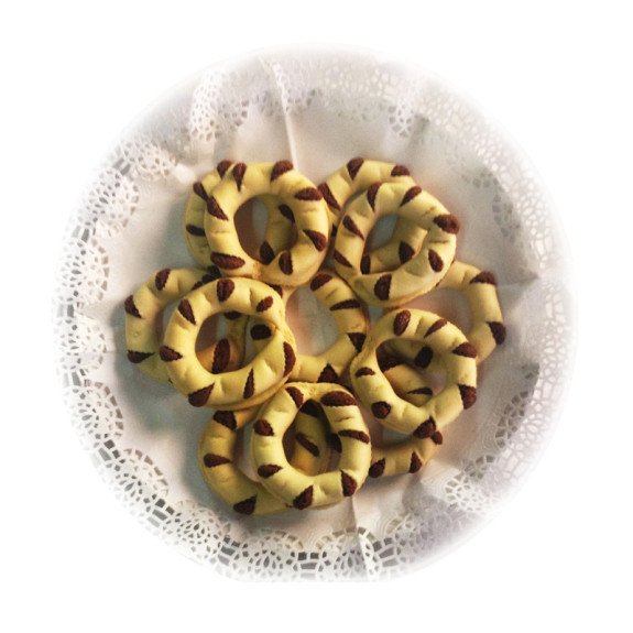 Ingredientes: farinha de trigo, açúcar, pão ralado, água, manteiga, banha, erva-doce, canela, cacau, sal, noz-moscada, limão, pimenta branca.